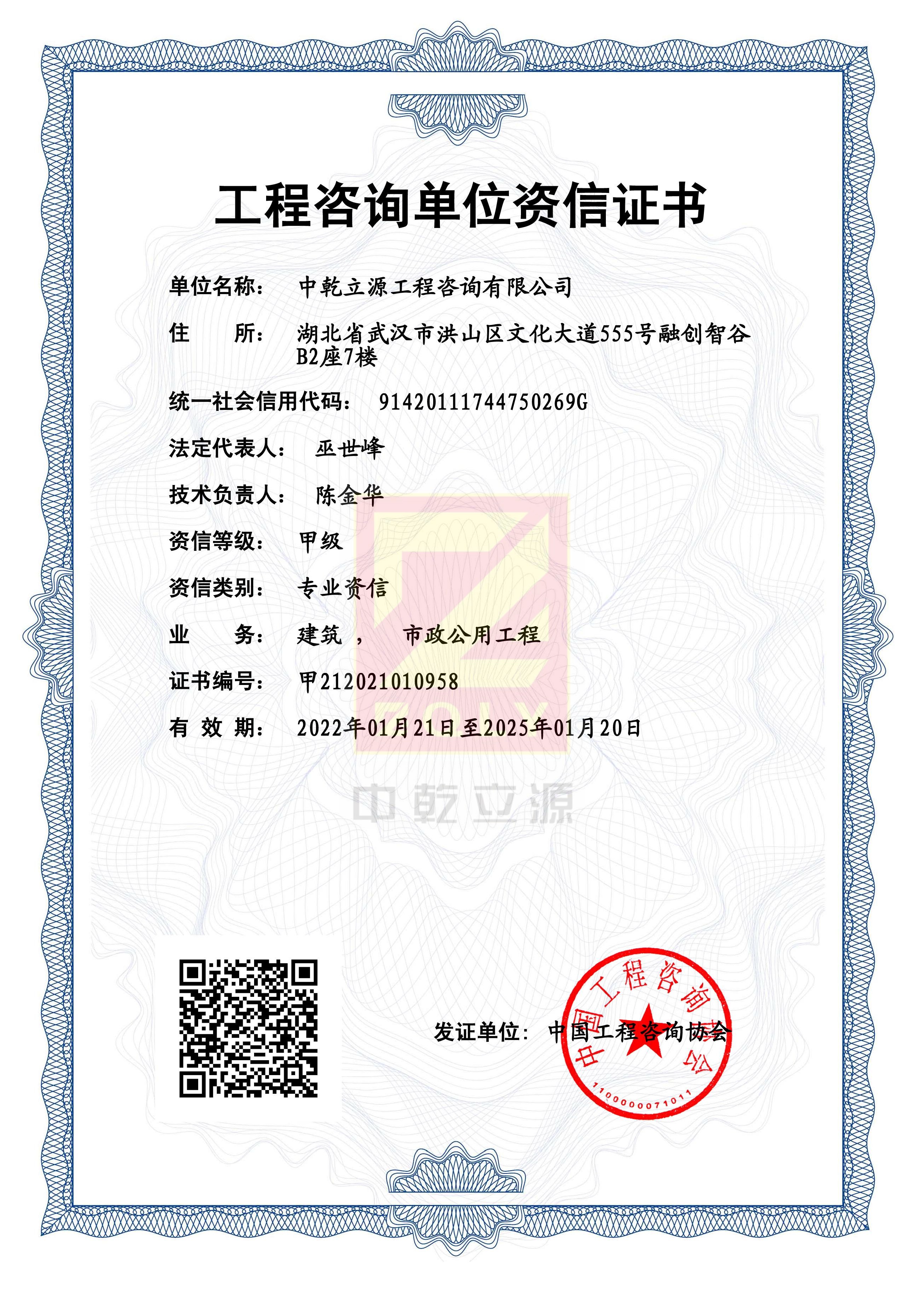 工程造價咨詢企業(yè)甲級資質(zhì)證書