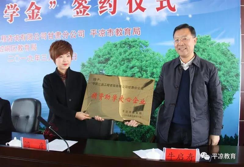 “乾源助學(xué)金”簽約儀式在平?jīng)鲆恢信e行;