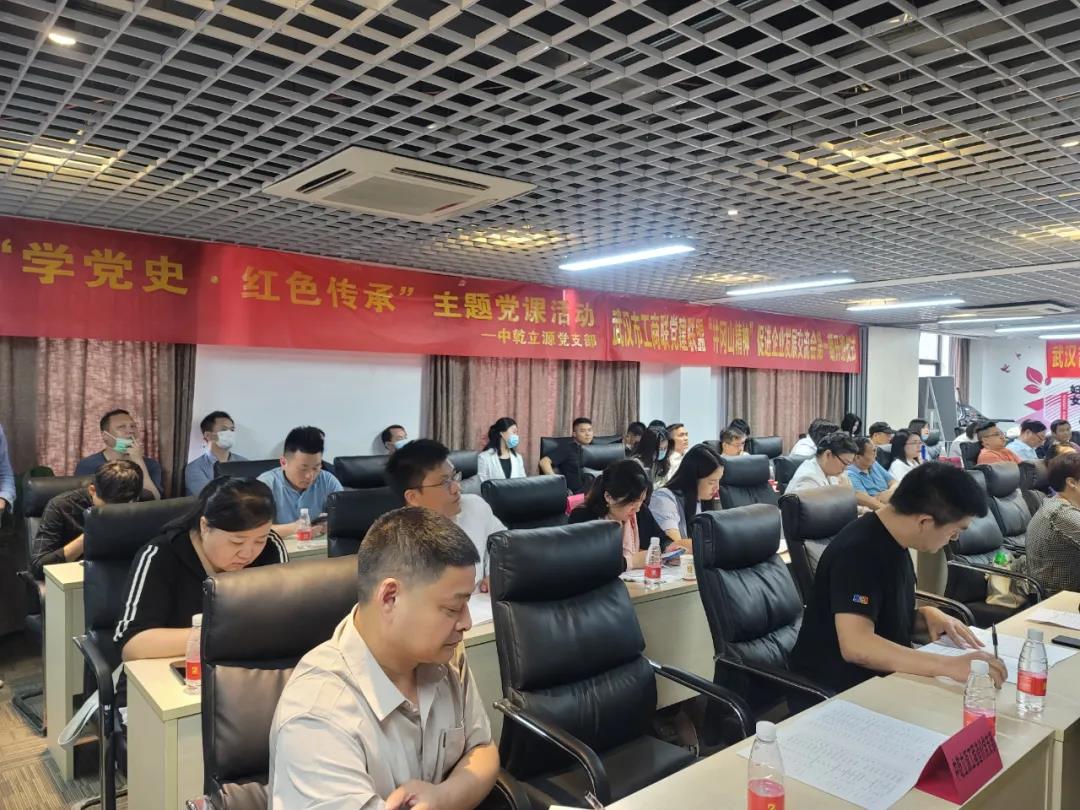 武漢市工商聯(lián)會(huì)員部部長(zhǎng)閔勝華,副部長(zhǎng)劉玉瓊,洪山區(qū)工商聯(lián)劉興,武漢吉安商會(huì)會(huì)長(zhǎng)嚴(yán)芳,秘書長(zhǎng)劉國強(qiáng),中乾立源黨支部書記黃婧晗及黨支部黨員、各商會(huì)負(fù)責(zé)人聆聽了黨課。