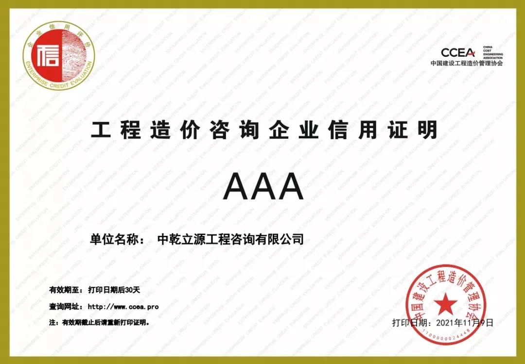 經(jīng)各省工程造價(jià)管理協(xié)會(huì)(中價(jià)協(xié)工作委員會(huì))初評(píng),中價(jià)協(xié)組織專(zhuān)家評(píng)審,從企業(yè)經(jīng)營(yíng)業(yè)績(jī)、技術(shù)力量、履約能力等綜合實(shí)力出發(fā),在2021年度全國(guó)工程造價(jià)咨詢(xún)企業(yè)信用評(píng)價(jià)中,中乾立源工程咨詢(xún)有限公司被評(píng)為AAA級(jí)企業(yè)。