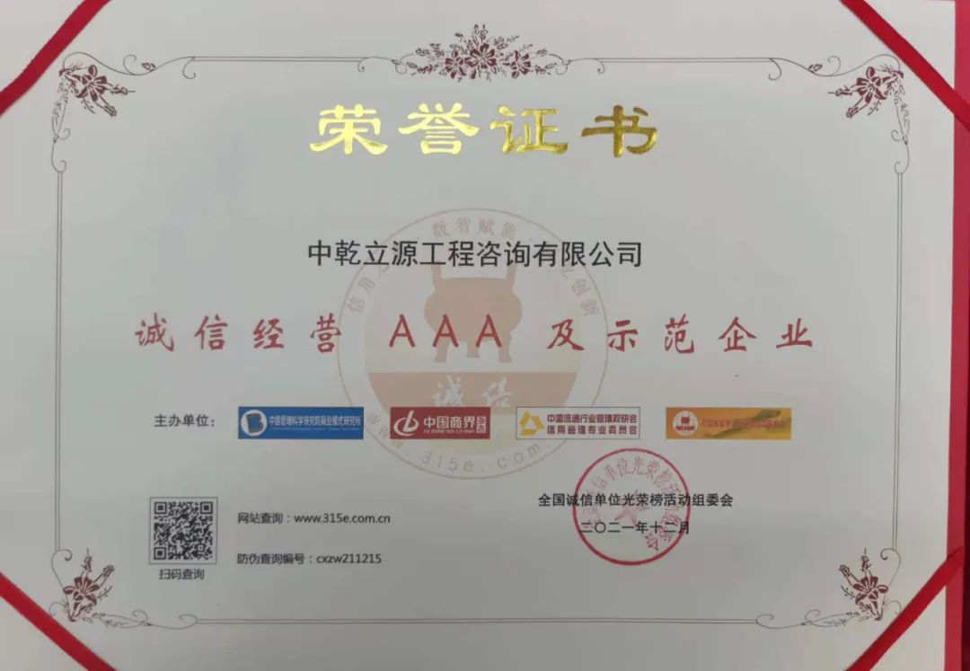 中乾喜訊 | 中乾立源再獲AAA信用等級(jí)!