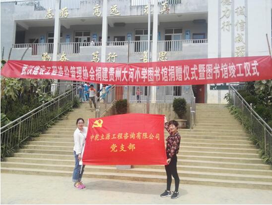 2017年9月1日,秋意濃濃,伴隨著五星紅旗冉冉升起,武漢建設(shè)工程造價(jià)管理協(xié)會捐建貴州大河小學(xué)圖書館捐贈儀式暨圖書館竣工儀式在貴州大河小學(xué)隆重舉行。武漢建設(shè)工程造價(jià)管理協(xié)會汪國剛會長、熊偉副會長、中乾立源黨支部書記張楊及其它會員單位負(fù)責(zé)人、畢節(jié)市金海湖新區(qū)教科文衛(wèi)局王毅副局長、雙山鎮(zhèn)黨委書記王偉、大河小學(xué)沈長春校長等領(lǐng)導(dǎo)共同參與本次儀式。武漢建設(shè)工程造價(jià)管理協(xié)會捐建貴州大河小學(xué)圖書館活動前期由恒大集團(tuán)扶貧項(xiàng)目潘榕經(jīng)理牽線,在協(xié)會領(lǐng)導(dǎo)的宣傳下,短短一周時(shí)間協(xié)會及會員單位共同籌集16.55萬元資金定向捐贈給大河小學(xué)圖書館新建項(xiàng)目。中乾立源積極響應(yīng)行業(yè)協(xié)會號召,在黨支部的組織下全體黨員參與本次捐贈活動。