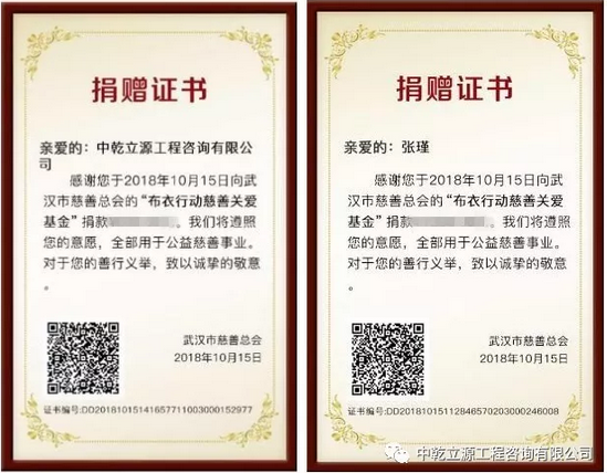 公司和黨員代表同志的捐贈證書