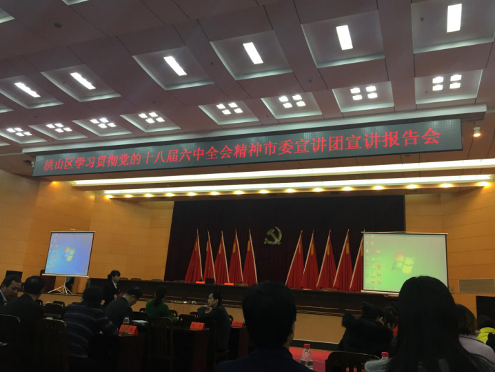 11月17日下午,黨的十八屆六中全會(huì)精神武漢市委宣講團(tuán)報(bào)告會(huì)在洪山區(qū)機(jī)關(guān)會(huì)議中心舉行,市委宣講團(tuán)成員、中南財(cái)經(jīng)政法大學(xué)張紅教授作題為《堅(jiān)定不移深化全面從嚴(yán)治黨》報(bào)告。我公司支部書記參會(huì)學(xué)習(xí)。