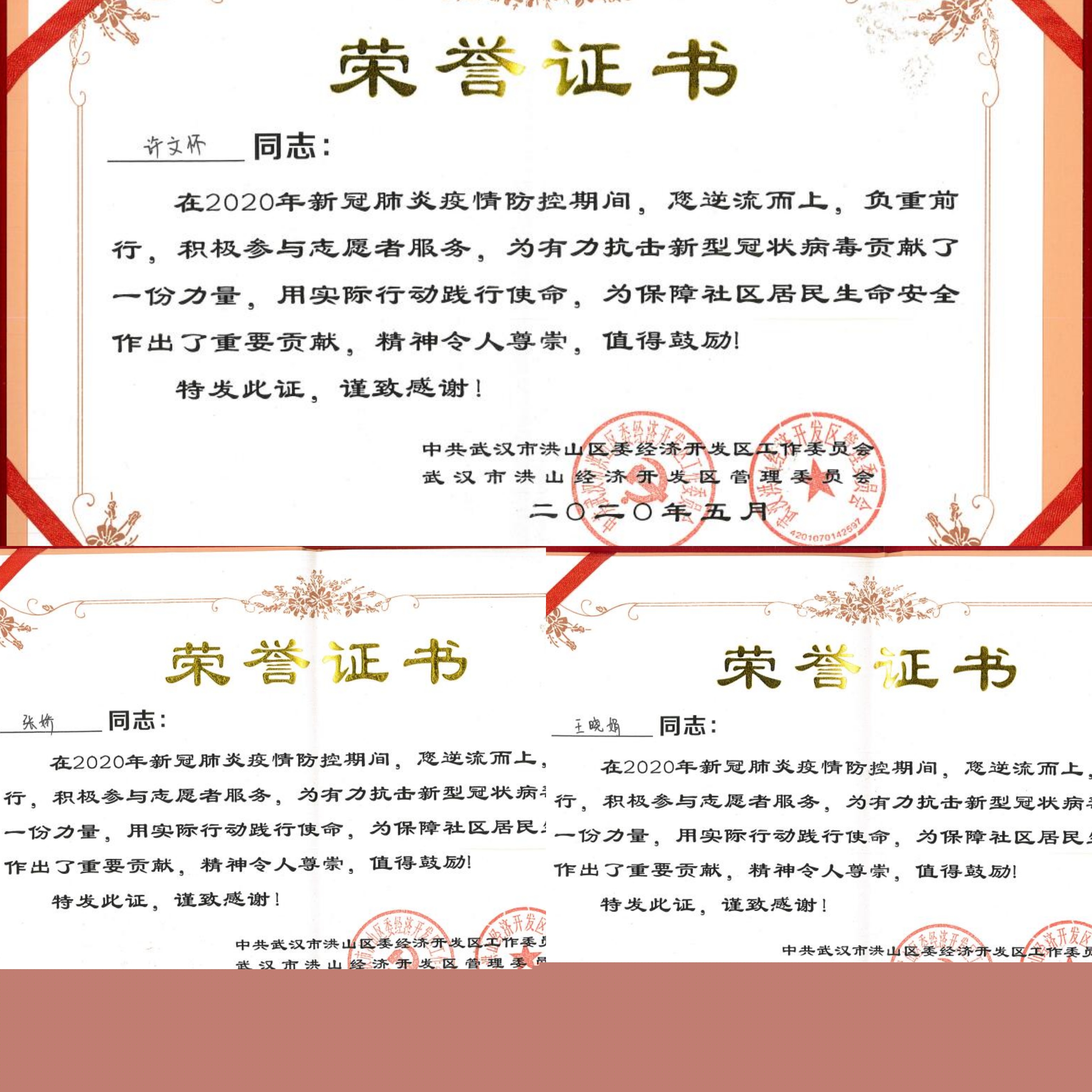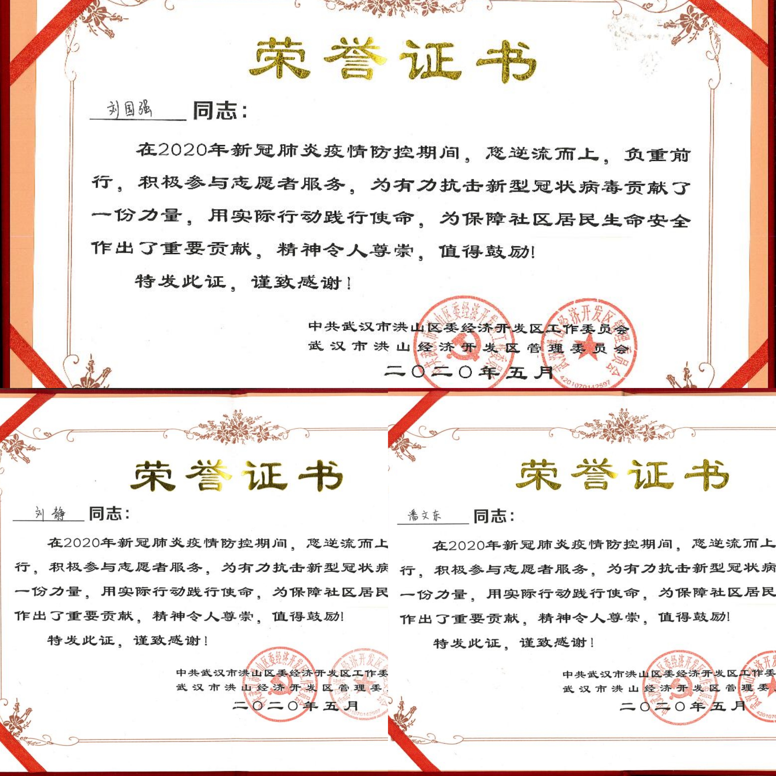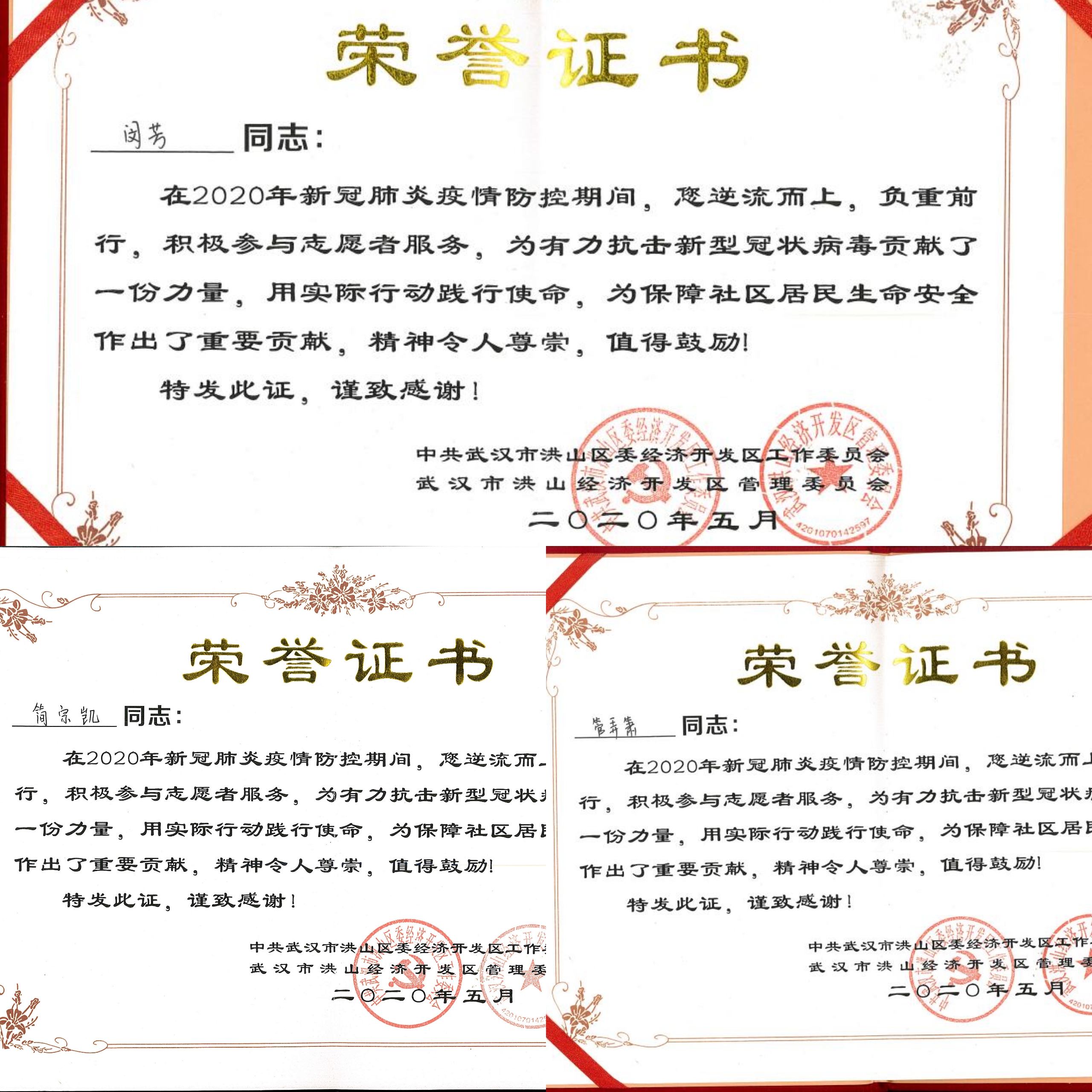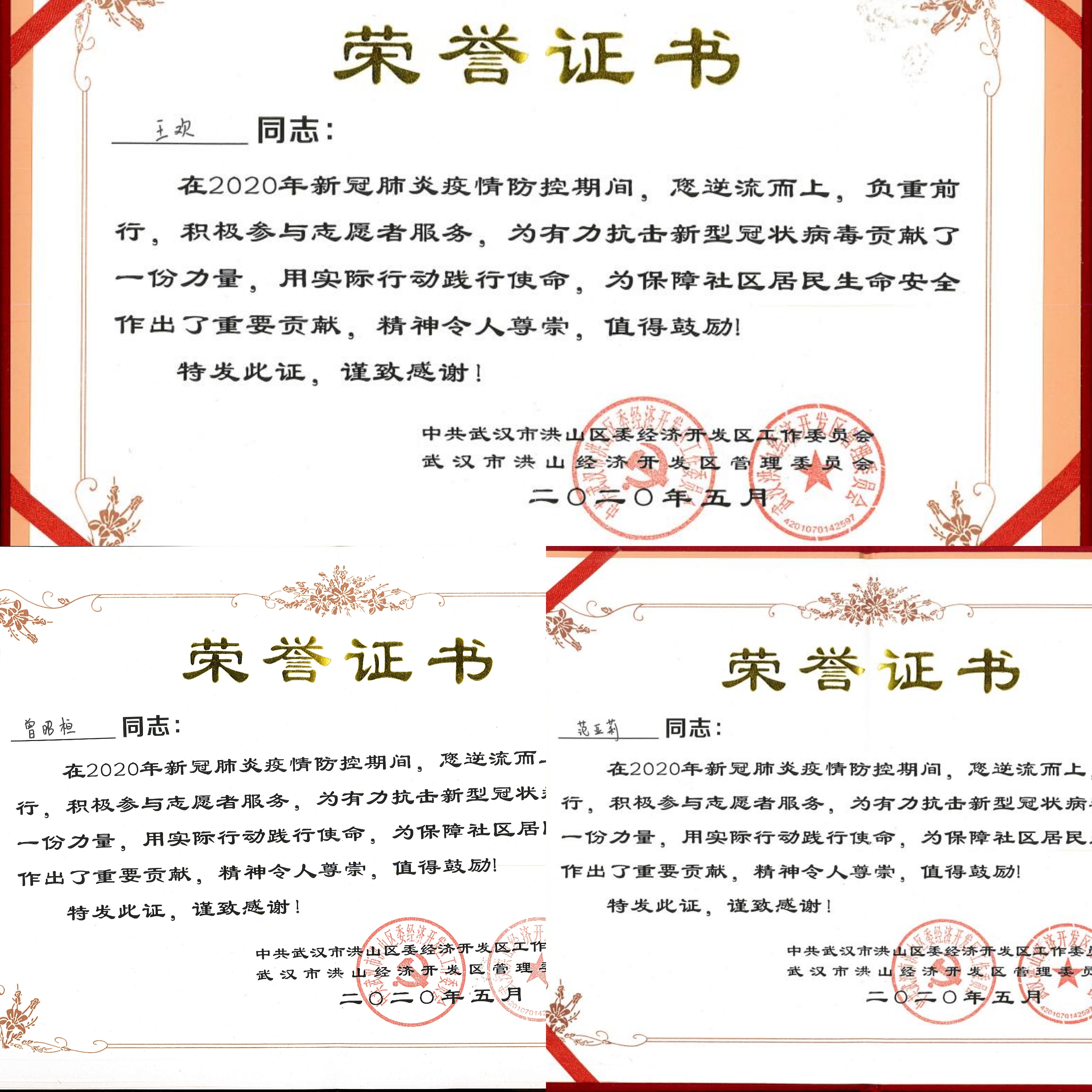 為樹立先進(jìn)典型、凝聚榜樣力量,近日,中共武漢市洪山區(qū)委經(jīng)濟(jì)開發(fā)區(qū)對(duì)積極參與疫情防控的中乾立源黨支部志愿者進(jìn)行了表彰,頒發(fā)了榮譽(yù)證書,感謝他們?cè)谝咔榉揽刂械臒o私奉獻(xiàn)。