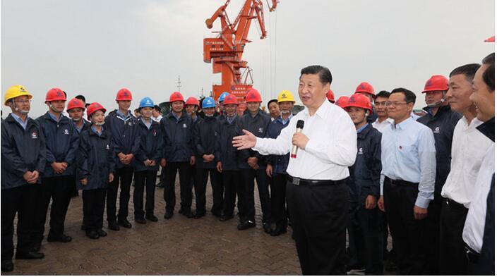 正在現(xiàn)場作業(yè)的碼頭工人看到總書記來了,激動地圍攏過來向總書記問好。習(xí)近平同他們親切握手,勉勵他們愛崗敬業(yè)、爭創(chuàng)一流,樹立和展示當(dāng)代工人階級良好形象。習(xí)近平指出,“一帶一路”建設(shè)是人心所向,我們要在這個框架下推動大開放大開發(fā),進(jìn)而推動實現(xiàn)“兩個一百年”奮斗目標(biāo)、實現(xiàn)中華民族偉大復(fù)興。大家要攜手同心,共圓中國夢。總書記熱情洋溢的話語,使在場每個人都深受感染。