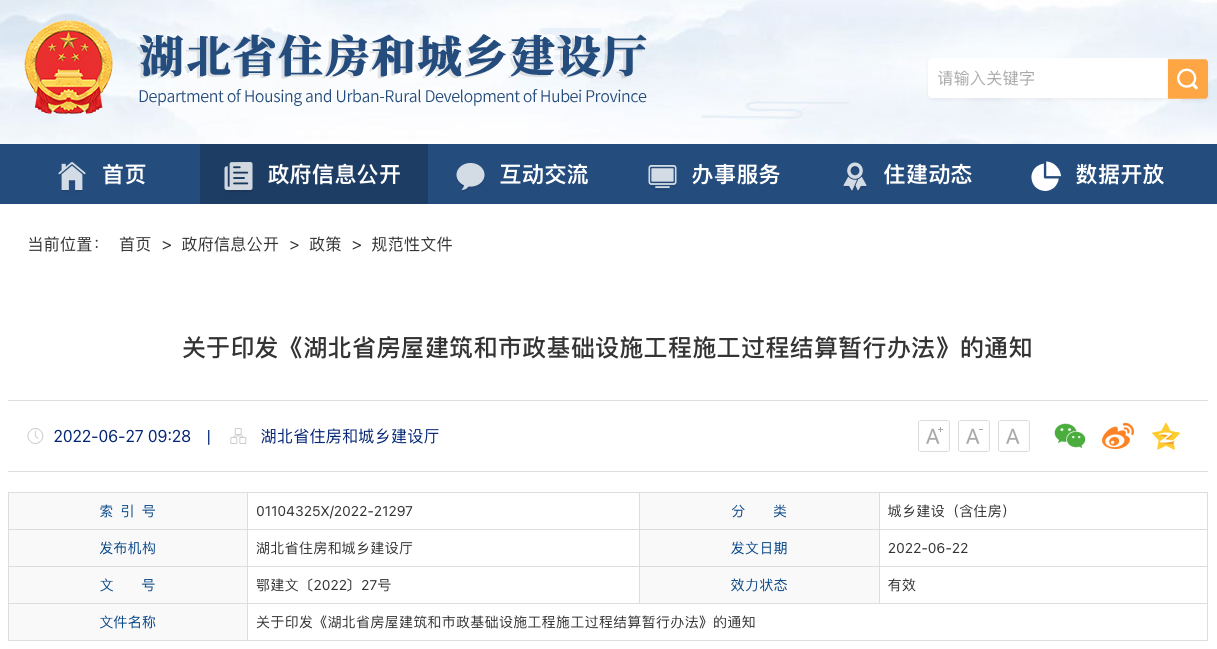 6月27日,湖北省住建廳發(fā)布了《湖北省房屋建筑和市政基礎(chǔ)設(shè)施工程施工過程結(jié)算暫行辦法》的通知。與此同時(shí),湖北省住建廳針對該通知進(jìn)行了分析解讀,具體內(nèi)容如下:
