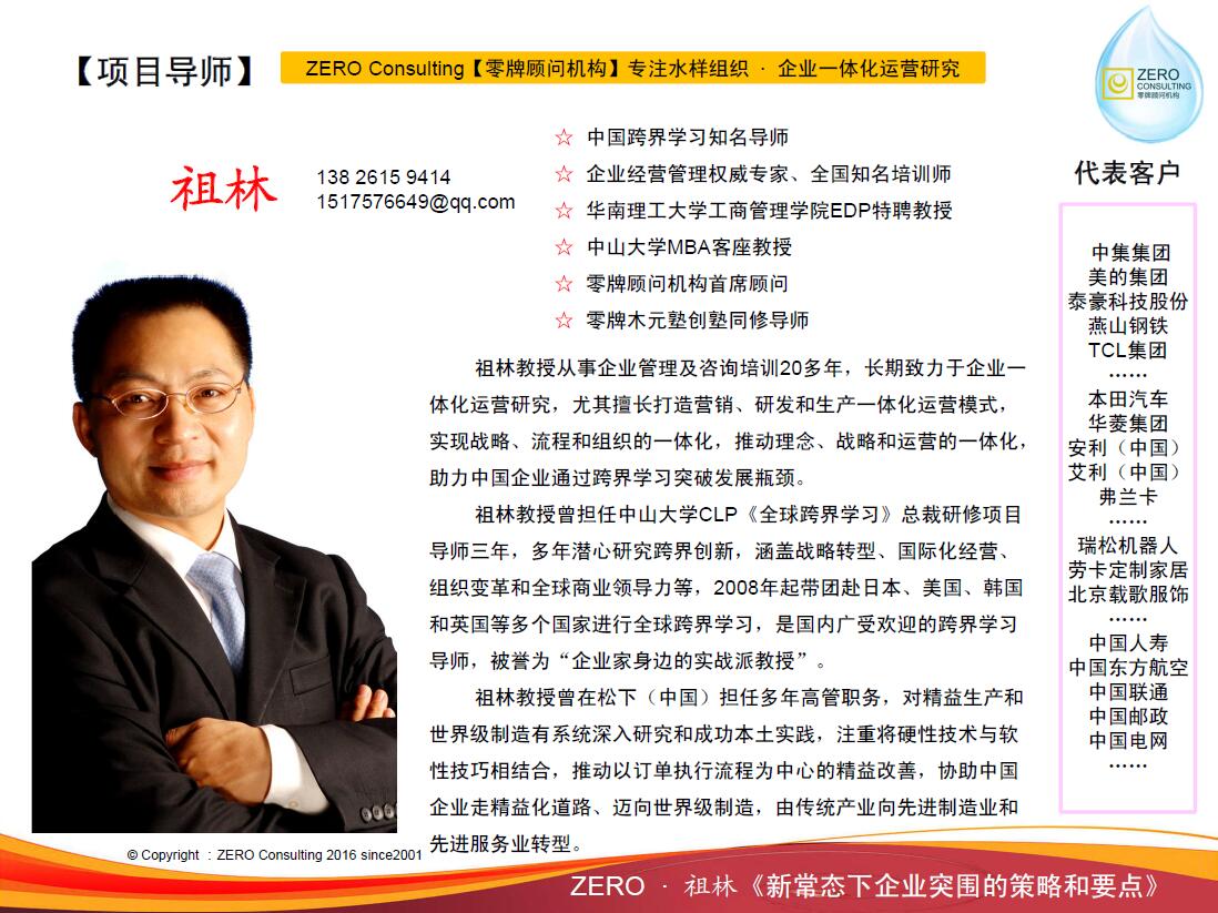 祖林教授從事企業(yè)管理及咨詢培訓(xùn)20多年,長期致力于企業(yè)一體化運(yùn)營研究,尤其擅長打造營銷、研發(fā)和生產(chǎn)一體化運(yùn)營模式,實(shí)現(xiàn)戰(zhàn)略、流程和組織的一體化,推動理念、戰(zhàn)略和運(yùn)營的一體化,助力中國企業(yè)通過跨界學(xué)習(xí)突破發(fā)展瓶頸。祖林教授表示:21世紀(jì)新常態(tài)是“一個在根本上發(fā)生巨變的時代”,全球化競爭、互聯(lián)網(wǎng)沖擊、技術(shù)加速度等因素深刻的影響這個時代。