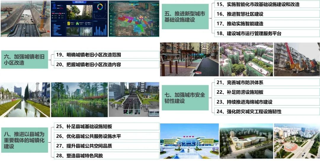 將完善城市空間結(jié)構(gòu)、實施城市生態(tài)修復(fù)和功能完善工程、強化城市特色風(fēng)貌塑造、加強居住社區(qū)建設(shè)、推進新型城市基礎(chǔ)設(shè)施建設(shè)、加強城鎮(zhèn)老舊小區(qū)改造、加強城市安全韌性建設(shè)、推進以縣城為重要載體的城鎮(zhèn)化建設(shè)等八個方面重點任務(wù),細(xì)化落實到28個子項,讓各地在實施中目標(biāo)一致、有的放矢。