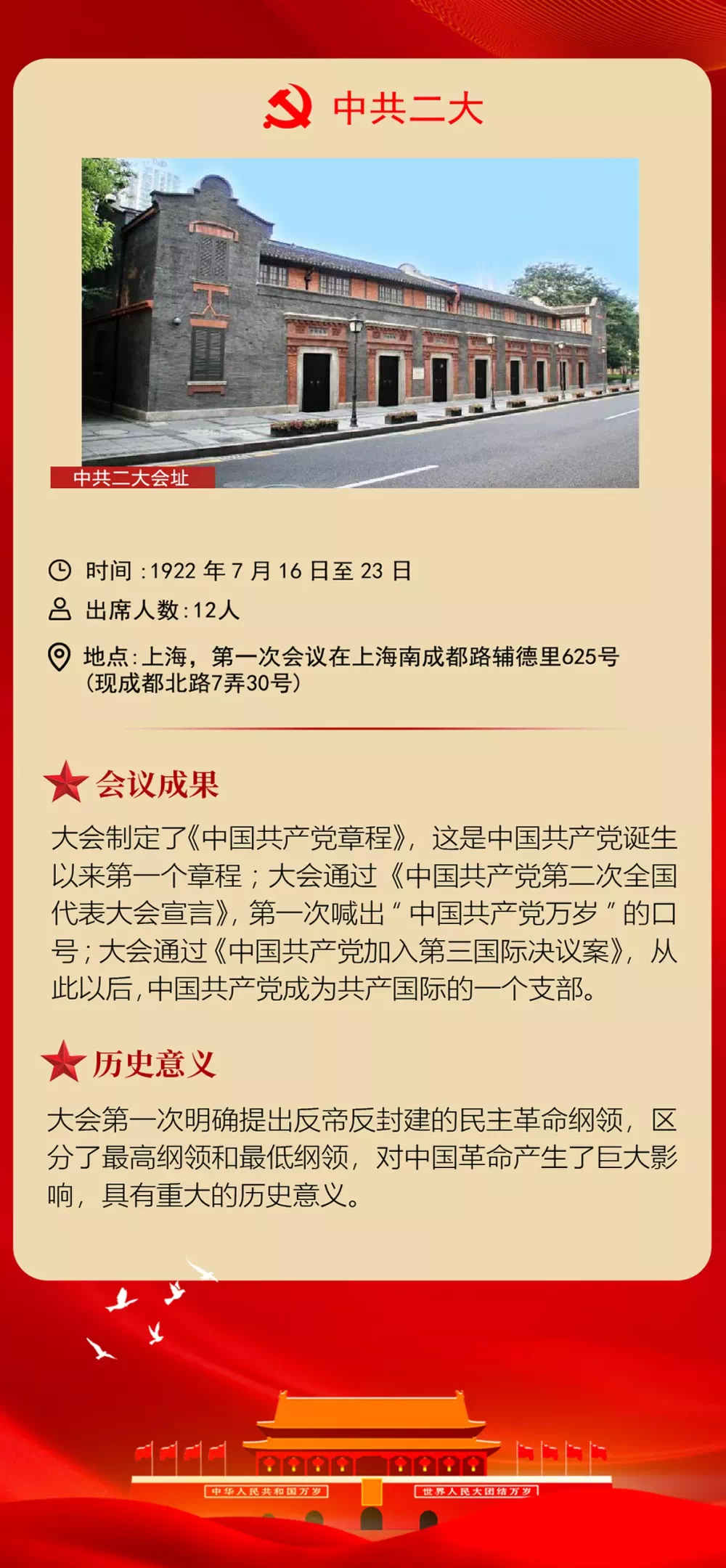 百年征程波瀾壯闊,百年初心歷久彌堅,在百年來的奮斗歷程中,我們黨領導人民取得了舉世矚目的輝煌成就,書寫了波瀾壯闊的歷史畫卷,在黨的二十大召開之際,讓我們一起來回顧歷屆黨代會的知識吧!