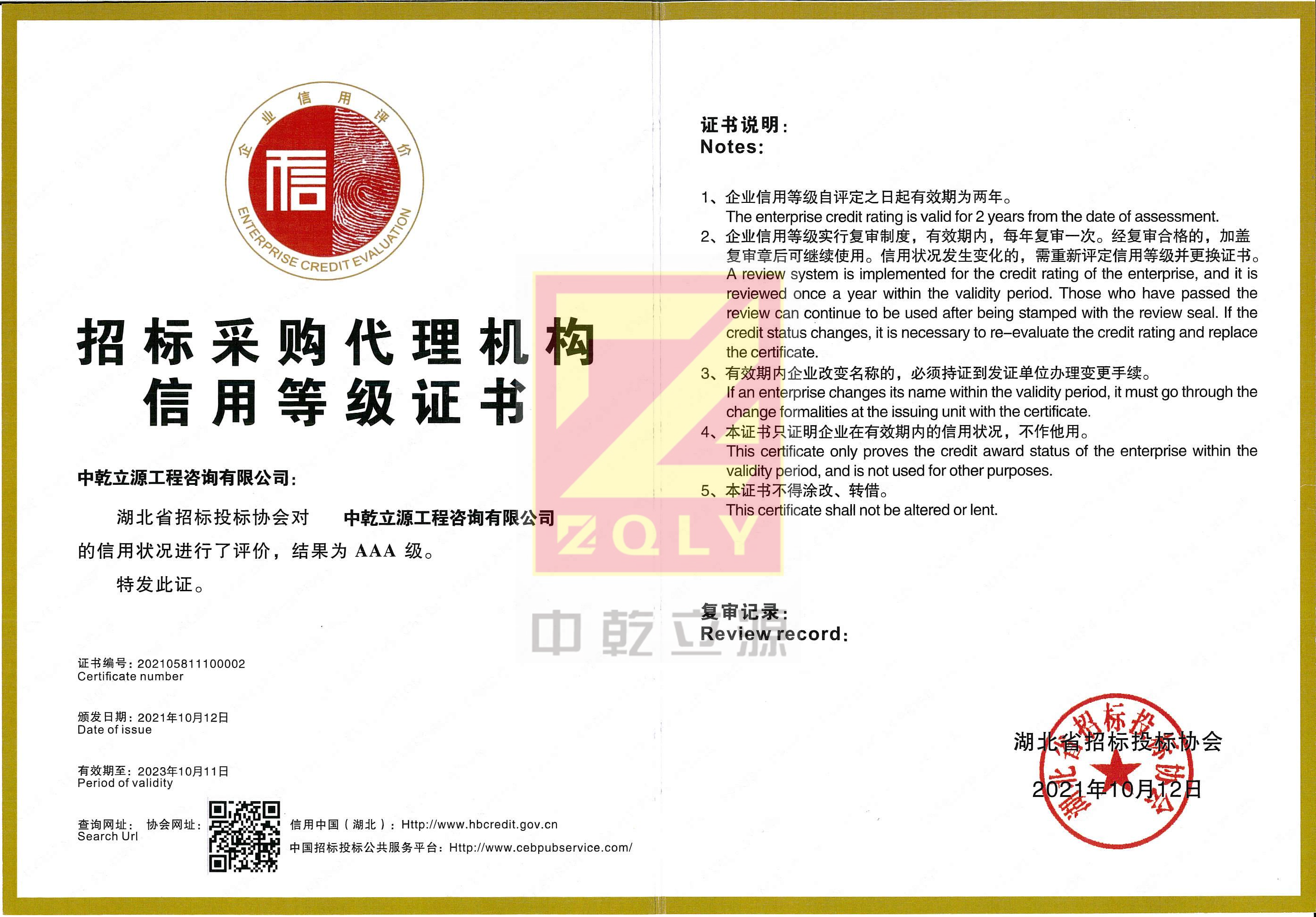 【2022】湖北省招標(biāo)采購(gòu)代理機(jī)構(gòu)信用評(píng)價(jià)AAA級(jí)信用企業(yè)