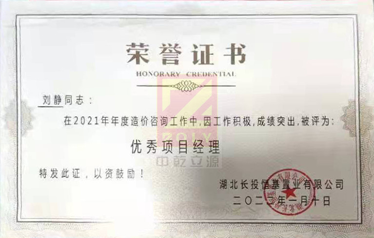 【2022】長投項目優(yōu)秀項目經(jīng)理證書