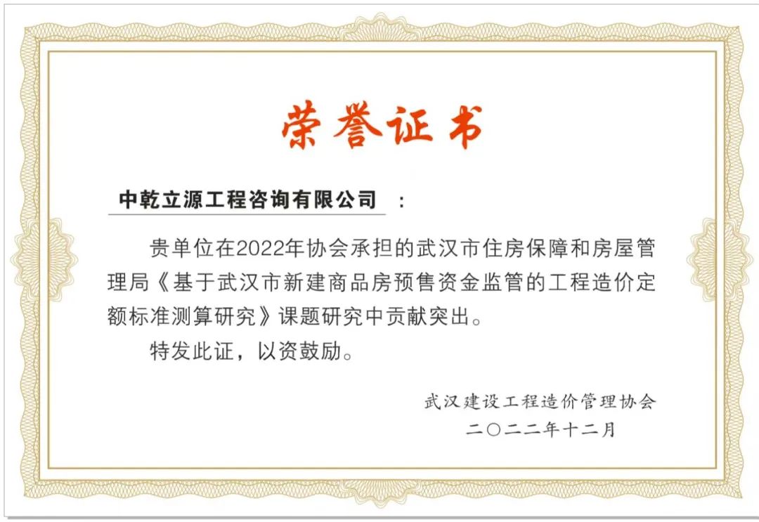 公司與武漢理工大學(xué)等高校合作,高質(zhì)量完成武漢市住房保障和房屋管理局《基于武漢市新建商品房預(yù)售資金監(jiān)管的工程造價定額標(biāo)準測算研究》課題研究