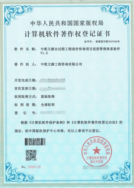 公司《中乾立源全過程工程造價咨詢項目進度管理體系軟件》等多項計算機軟件獲得著作權(quán)