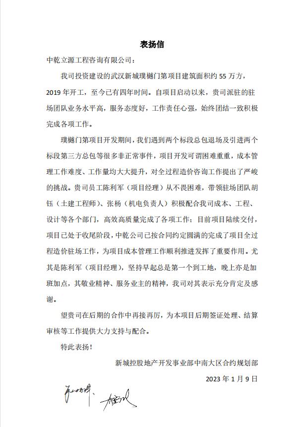 中乾立源自成立以來,嚴(yán)守執(zhí)業(yè)道德底線,保質(zhì)量,重服務(wù),以專業(yè)技術(shù)創(chuàng)新贏得了客戶的信賴和行業(yè)管理部門等相關(guān)單位的肯定,在日常工作中,獲得甲方高度認(rèn)可,多次受到表揚(yáng)。一個(gè)個(gè)贊許,一句句肯定,是對(duì)我們工作最好的評(píng)語,感謝每一位業(yè)主的認(rèn)可和督促,因?yàn)橛心銈?,才能讓我們成為更好的自?