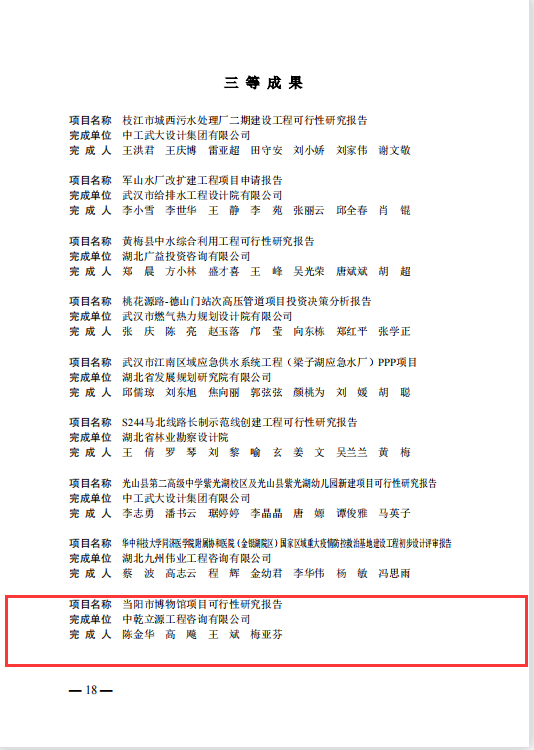 近日,湖北省工程咨詢協(xié)會發(fā)布2022年湖北省工程咨詢成果評價結(jié)果公告,我司申報的《當(dāng)陽市博物館項目》榮獲三等獎。