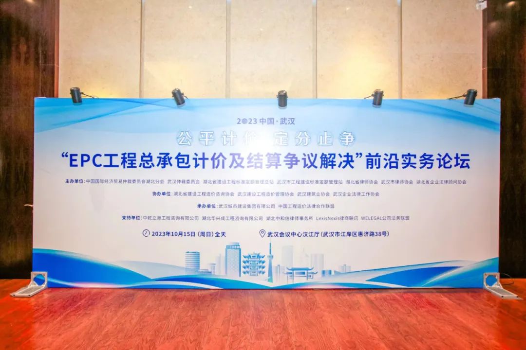 2023年10月15日,由中國國際經(jīng)濟(jì)貿(mào)易仲裁委員會(huì)、武漢仲裁委員會(huì)、湖北省建設(shè)工程標(biāo)準(zhǔn)定額管理總站、武漢市工程建設(shè)標(biāo)準(zhǔn)定額管理站、湖北省律師協(xié)會(huì)、武漢市律師協(xié)會(huì)、湖北省企業(yè)法律顧問協(xié)會(huì)單位主辦,湖北省建設(shè)工程造價(jià)咨詢協(xié)會(huì)、武漢建設(shè)工程造價(jià)管理協(xié)會(huì)、武漢建筑業(yè)協(xié)會(huì)、武漢企業(yè)法律工作協(xié)會(huì)協(xié)辦,武漢城市建設(shè)集團(tuán)有限公司、中國工程造價(jià)法律合作聯(lián)盟承辦。