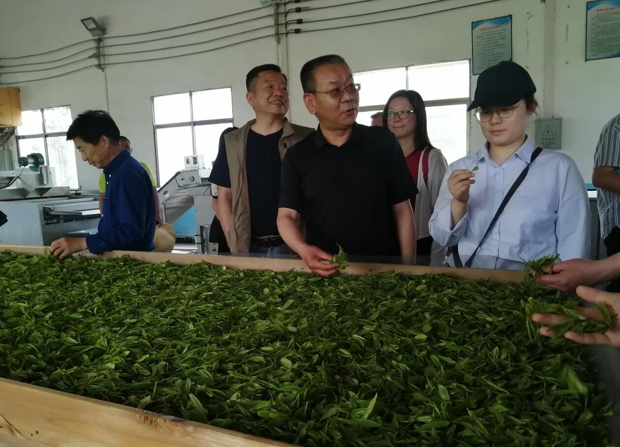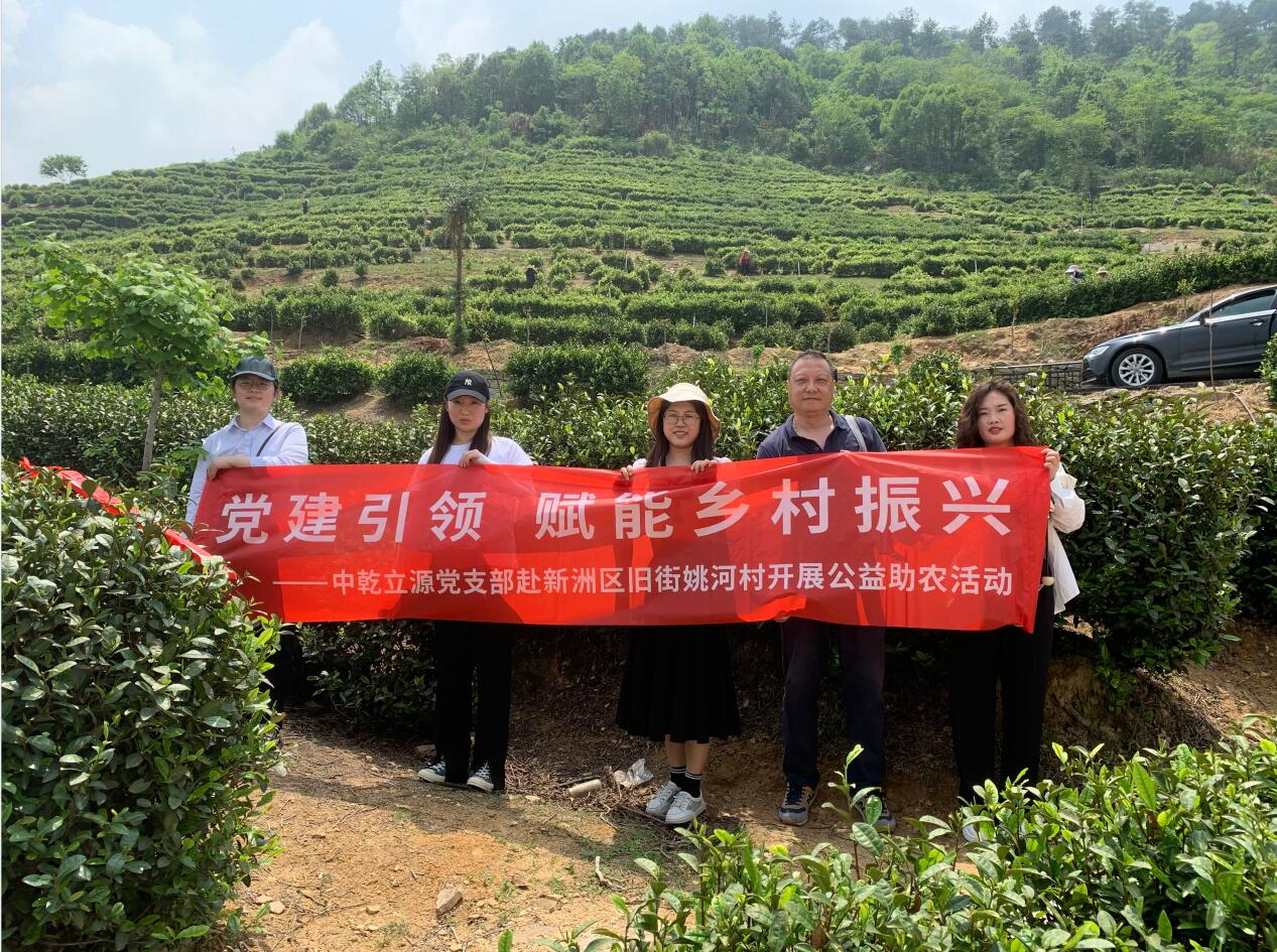 4月20日上午,中乾立源黨支部在洪山經(jīng)濟(jì)開發(fā)區(qū)黨工委的帶領(lǐng)下來到新洲區(qū)舊街姚河村大家山茶業(yè)公司考察,了解當(dāng)?shù)夭枞~種植和銷售情況,以購代捐幫扶村里的產(chǎn)業(yè)發(fā)展。