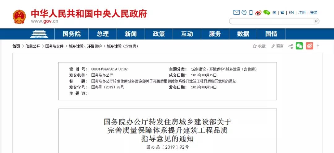 9月24日,國(guó)務(wù)院辦公廳轉(zhuǎn)發(fā)《住房城鄉(xiāng)建設(shè)部關(guān)于完善質(zhì)量保障體系提升建筑工程品質(zhì)指導(dǎo)意見(jiàn)的通知》,主要內(nèi)容如下: