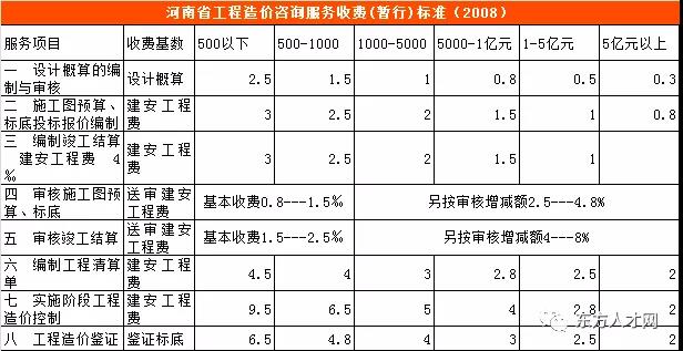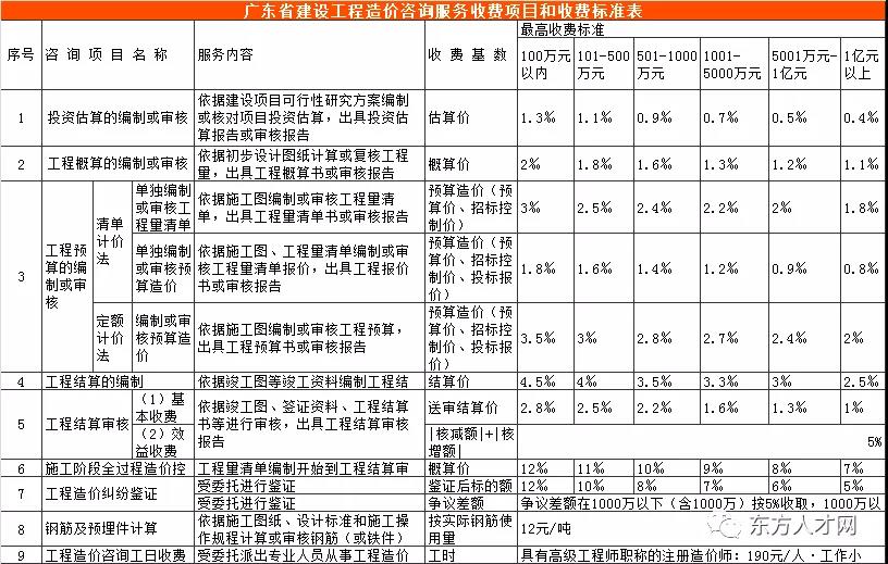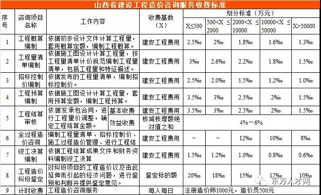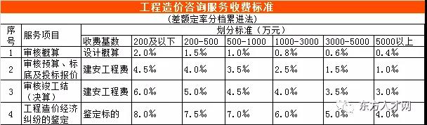 1、工程造價咨詢服務收費額低于3000元的,按3000元收取。