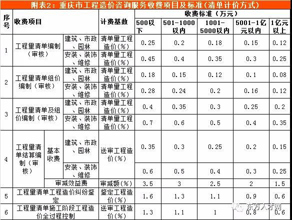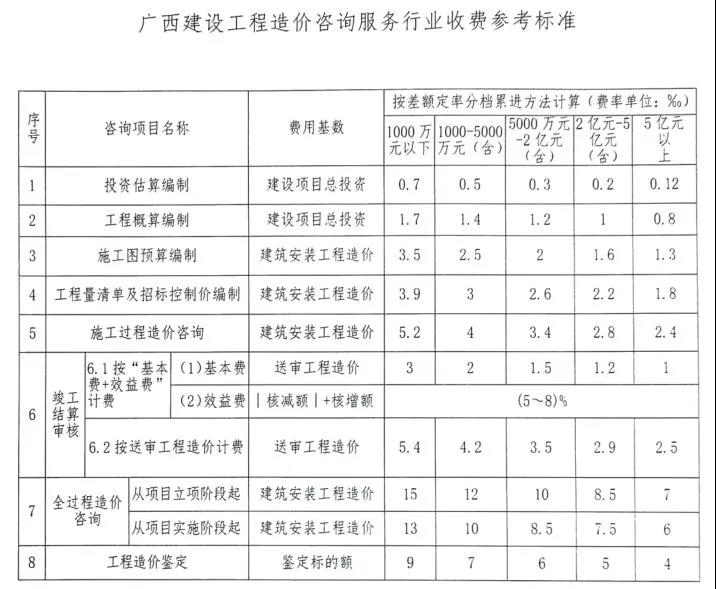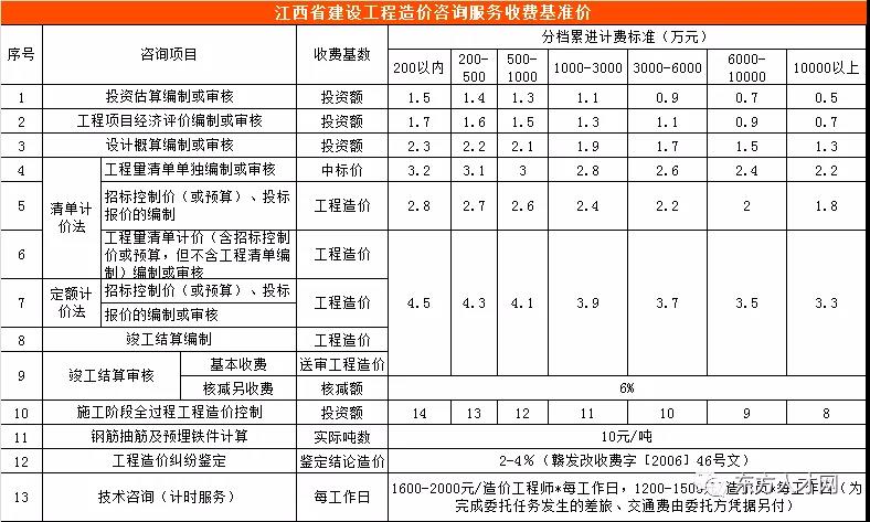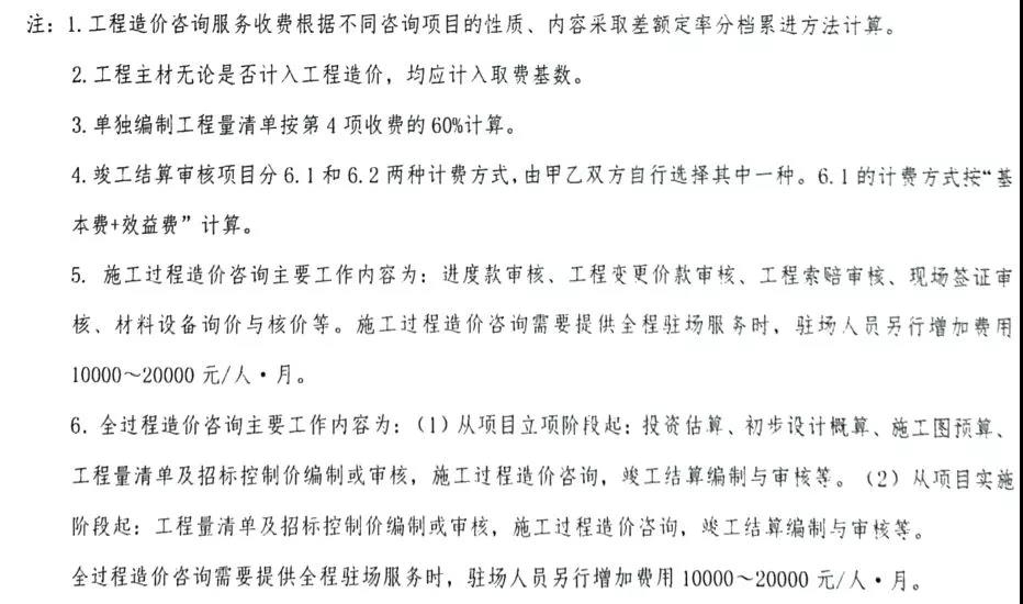 1、單獨“編制工程量清單”咨詢服務按“2.編制工程量清單及計價”同檔費率的60%計費。