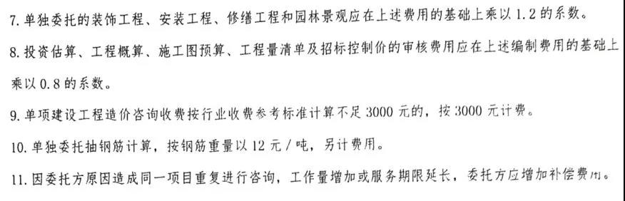 4.單獨委托的裝飾工程、安裝工程和修繕工程應在上述費用的基礎上乘以1.2的系數;