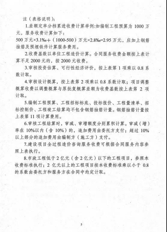 5、 公路、鐵路、水電等土木工程按照本表所對應的收費項目的收費標準的70%計收。
