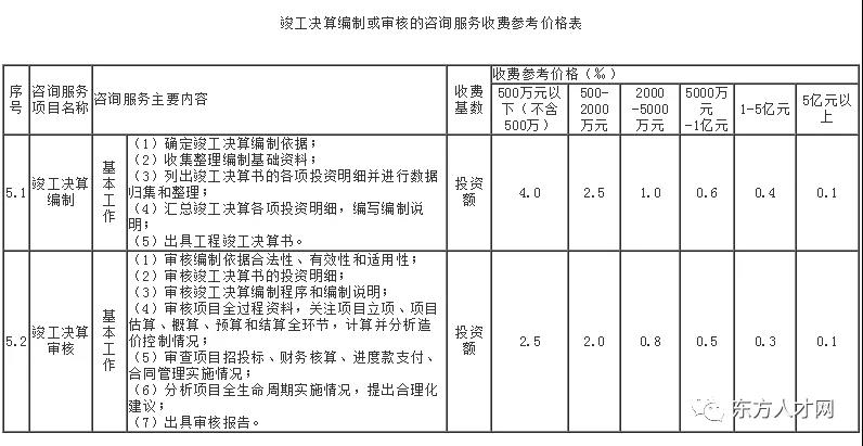 1.表中“工程預算、結算、決算審核、審計”項目的計費方式為(1)+(2)。