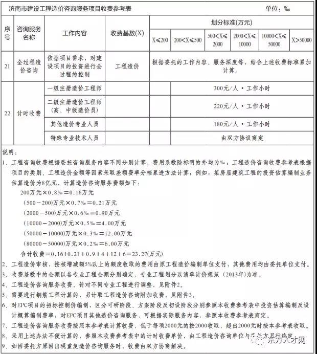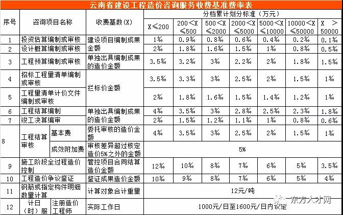 一、上表收費按差額定率分檔累進法計費。劃分標準為單項工程。當咨詢收費不足2000元時,按2000元收取。