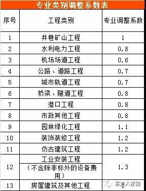 1.房屋建筑工程和其他未涵蓋的專業(yè)工程調整系數為1.0;