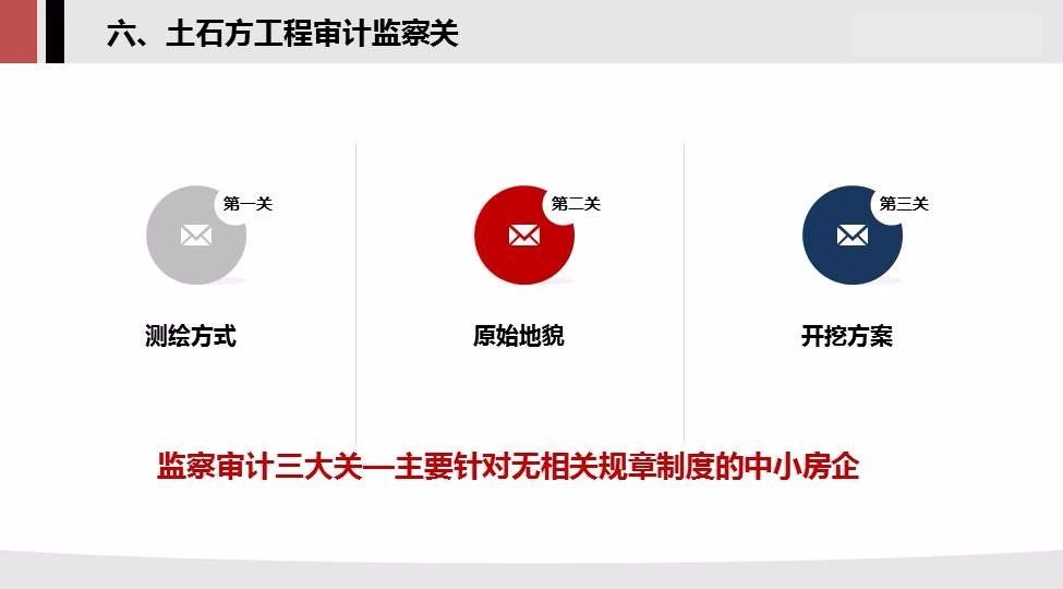 土石方工程因其金額較大,工作成果不可恢復(fù),故成為各大房企監(jiān)察審計(jì)的重點(diǎn),主要注意以下幾個(gè)方面: