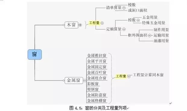 窗按材質(zhì)類別不同可劃分為木窗、金屬窗,其工程量列項分為清單算量和定額算量兩種,見圖4.5