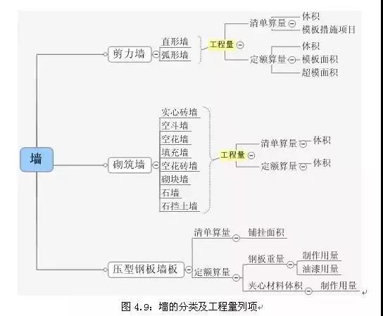 常見的墻分為剪力墻和砌筑墻兩大類,其工程量列項見圖4.9