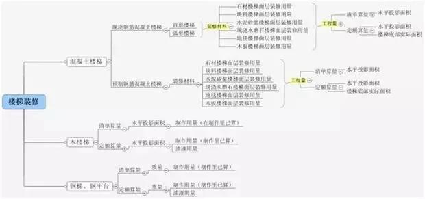樓梯裝修仍分為混凝土樓梯、木樓梯和鋼梯三種,其工程量列項見圖4.17