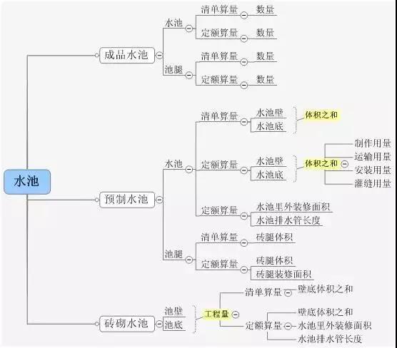 這里將常見的水池分為成品水池、預(yù)制水池和磚砌水池三類,其工程量列項見圖4.19