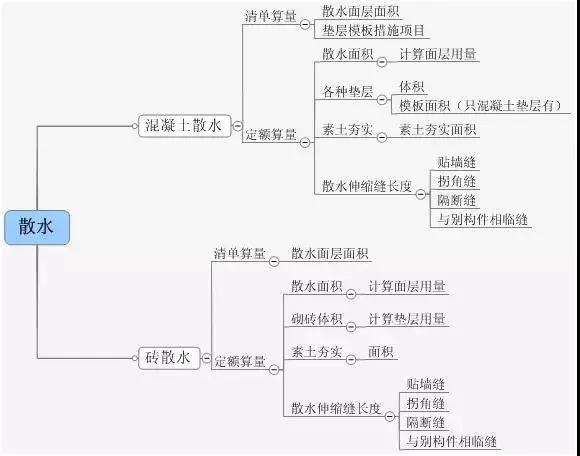 散水分為混凝土散水和磚砌散水兩種,其工程量列項見圖4.28