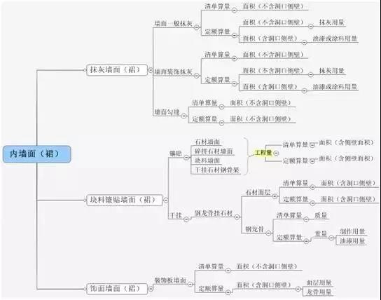 圖4.42:內(nèi)墻面(裙)的分類及工程量列項