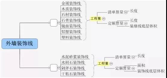 外墻裝飾線按材質(zhì)不同工分11中,其工程量列項見圖4.53