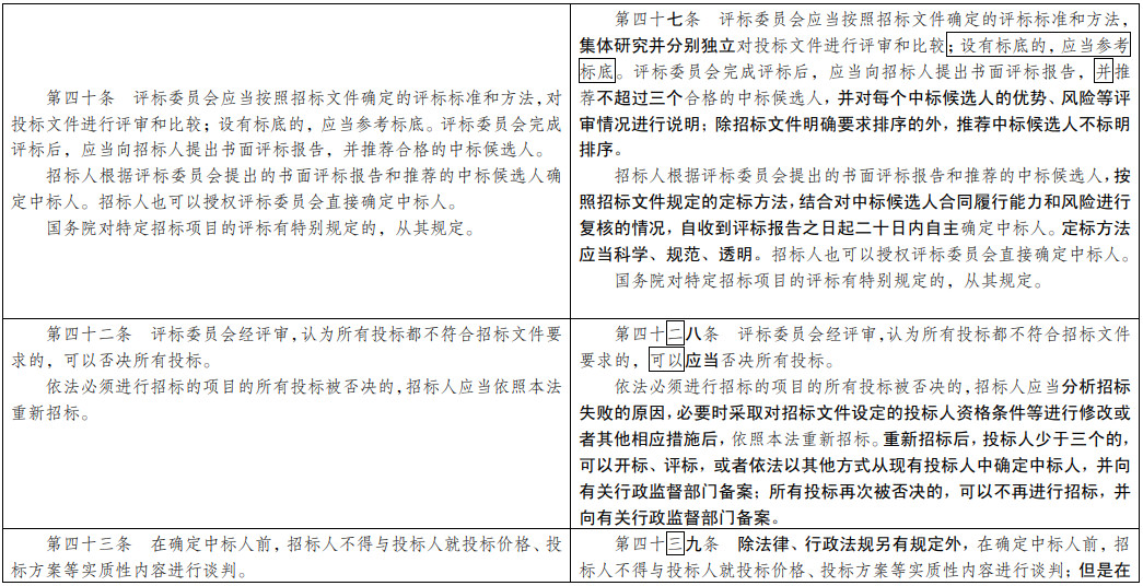 一是堅(jiān)持問題導(dǎo)向。《招標(biāo)投標(biāo)法》涉及領(lǐng)域和行業(yè)廣泛、利益主體多元、運(yùn)行機(jī)制復(fù)雜、監(jiān)管鏈條較長(zhǎng),社會(huì)各界高度關(guān)注。我們聚焦《招標(biāo)投標(biāo)法》實(shí)施以來招標(biāo)人、投標(biāo)人、招標(biāo)代理機(jī)構(gòu)以及行政監(jiān)督部門反映強(qiáng)烈的突出問題,特別是排斥限制潛在投標(biāo)人、圍標(biāo)串標(biāo)、低質(zhì)低價(jià)中標(biāo)、評(píng)標(biāo)質(zhì)量不高、隨意廢標(biāo)等,深入科學(xué)論證,提出制度化解決方案。