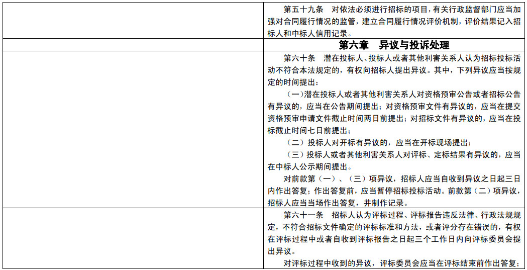 (八)加強(qiáng)和創(chuàng)新招投標(biāo)監(jiān)管。加強(qiáng)招投標(biāo)領(lǐng)域信用體系建設(shè)。強(qiáng)化標(biāo)后合同履行情況監(jiān)管,解決招投標(biāo)與合同履行脫節(jié)問 題。加強(qiáng)對(duì)招標(biāo)代理行為和評(píng)標(biāo)專家行為的監(jiān)管。加大對(duì)圍標(biāo)串 標(biāo)等違法行為懲戒力度。推動(dòng)行政監(jiān)督部門建立抽查檢查機(jī)制。引入仲裁、調(diào)解等多元化糾紛解決方式。同時(shí),對(duì)現(xiàn)行《招標(biāo)投標(biāo)法》未規(guī)定的招標(biāo)終止、異議與投 訴處理程序、招標(biāo)檔案管理、投標(biāo)擔(dān)保和履約擔(dān)保等基本制度作 了補(bǔ)充規(guī)定,對(duì)法律實(shí)施過程中有關(guān)方面理解和執(zhí)行上存在疑問 的規(guī)定作了進(jìn)一步明確。