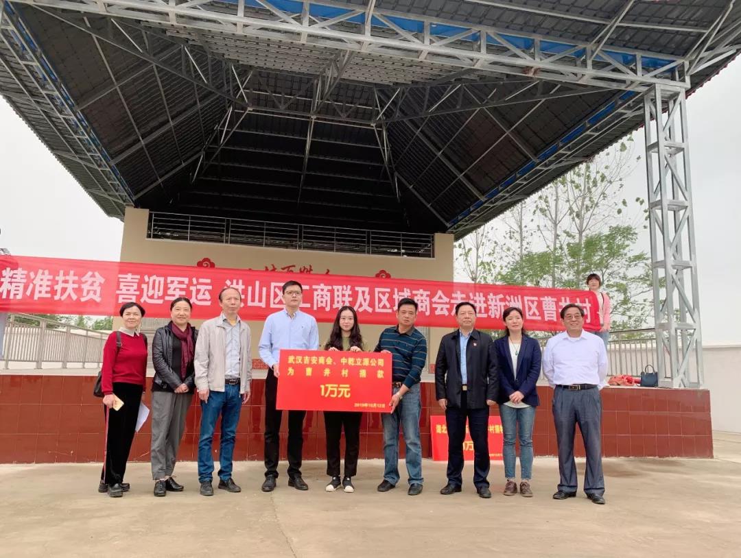 為了深入推進(jìn)“不忘初心、牢記使命”主題教育活動(dòng),結(jié)合“扶貧日”和“百企幫百村”精準(zhǔn)扶貧工作要求,配合政府打好扶貧攻堅(jiān)戰(zhàn)役,2019年10月12日上午,中乾立源在洪山區(qū)委統(tǒng)戰(zhàn)部常務(wù)副部長、洪山區(qū)工商聯(lián)黨組書記尹其照,洪山區(qū)教育局局長趙群,洪山區(qū)委統(tǒng)戰(zhàn)部副部長陳淑琴和工商聯(lián)機(jī)關(guān)干部的帶領(lǐng)下,和武漢各商會(huì)及企業(yè)家代表一行來到了中共武漢市新洲區(qū)舊街街曹井村支部委員會(huì)的黨員群眾服務(wù)中心。曹井村黨支部書記和當(dāng)?shù)卮迕窠o予了熱情的歡迎和接待。