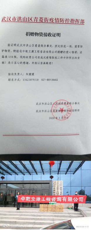 1月23日,中乾立源積極響應黨支部號召,董事長巫世峰攜夫人許明瑩冒著被傳染的風險,堅持在第一時間前往武漢市慈善總會,以公司名義捐贈人民幣10萬元,以支持抗擊疫情,展現(xiàn)了民營企業(yè)勇于肩負社會責任的精神。