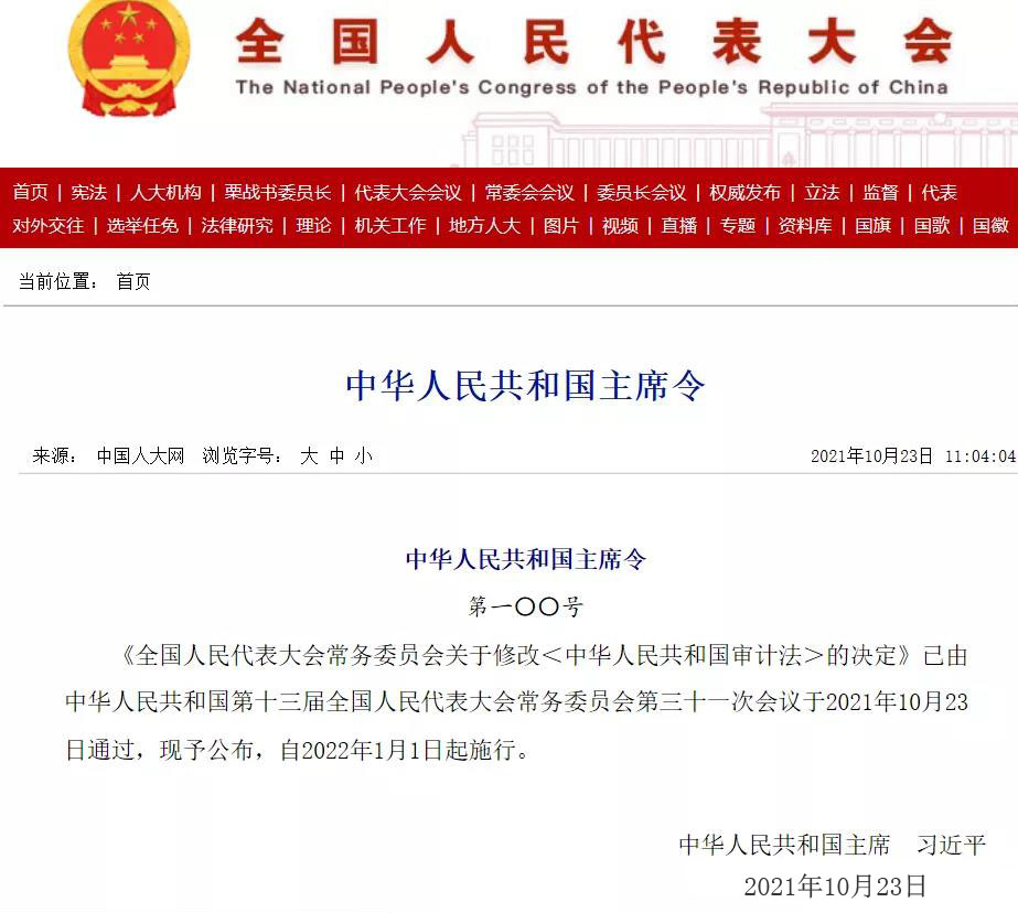 《中華人民共和國(guó)審計(jì)法》根據(jù)本決定作相應(yīng)修改并對(duì)條文順序作相應(yīng)調(diào)整,重新公布。