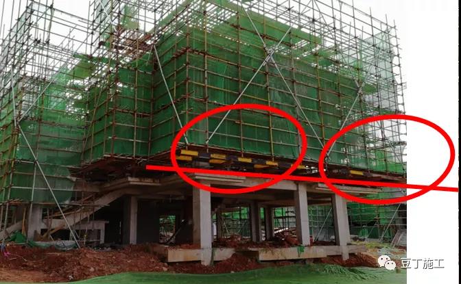地庫柱帽采用扣件承載全部重量,方案為U拖承載;現(xiàn)場施工與方案不符。