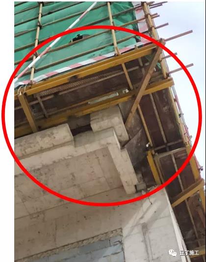 爬架附著支座尺寸有偏差,現(xiàn)場采用墊塊支設(shè),造成螺栓受力情況與計算書不符;因未按方案施工,料臺軌道上拉點處結(jié)構(gòu)拉裂;