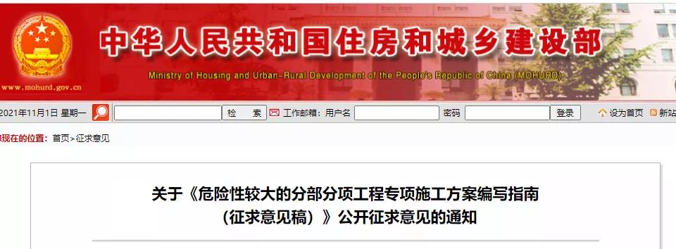 2021年11月1日,住建部官網(wǎng)發(fā)布《危險性較大的分部分項工程專項施工方案編寫指南(征求意見稿)》。