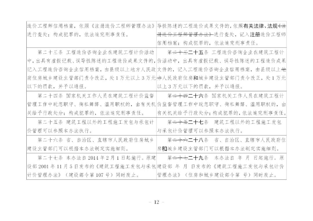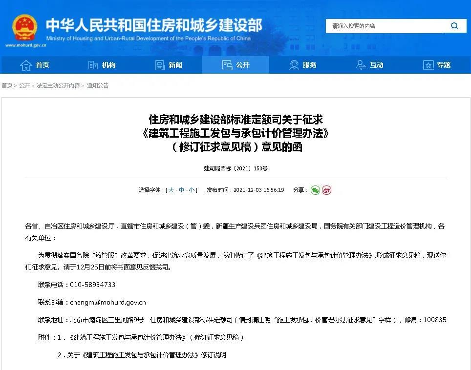 住建部標準定額司關于征求《建筑工程施工發(fā)包與承包計價管理辦法》(修訂征求意見稿)意見的函